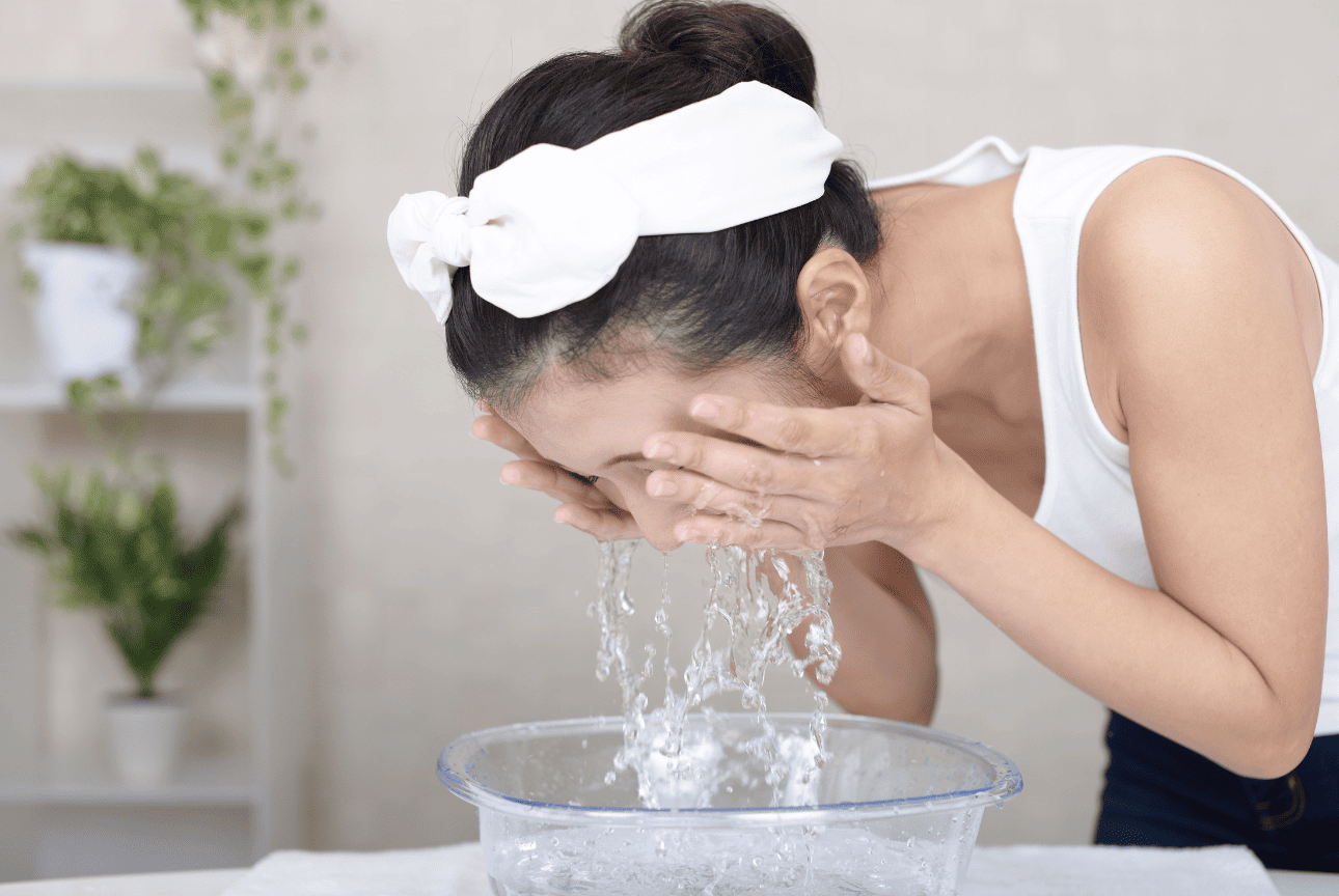 1. ล้างหน้าให้สะอาดแต่ไม่แห้งตึง