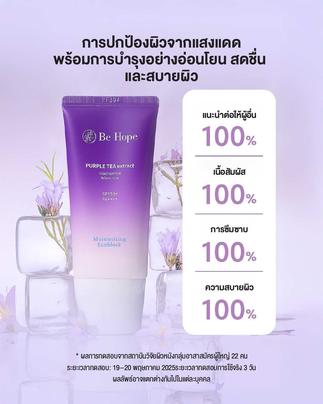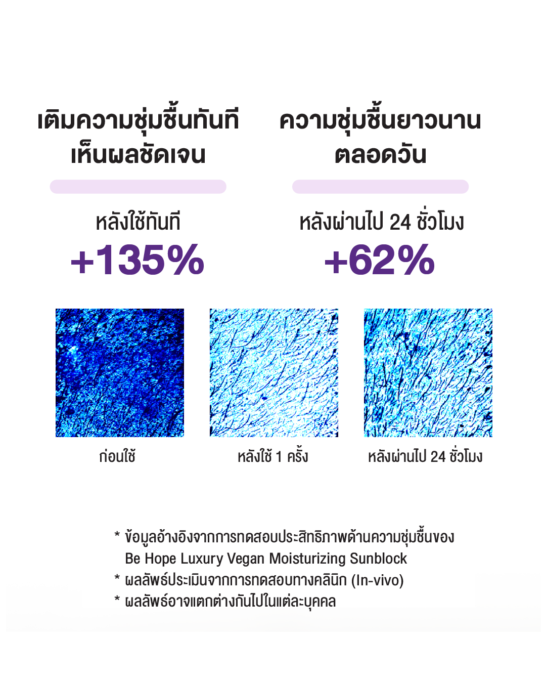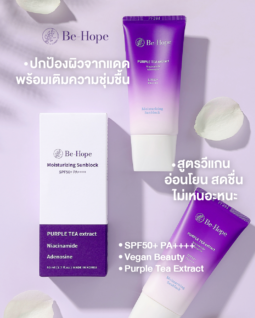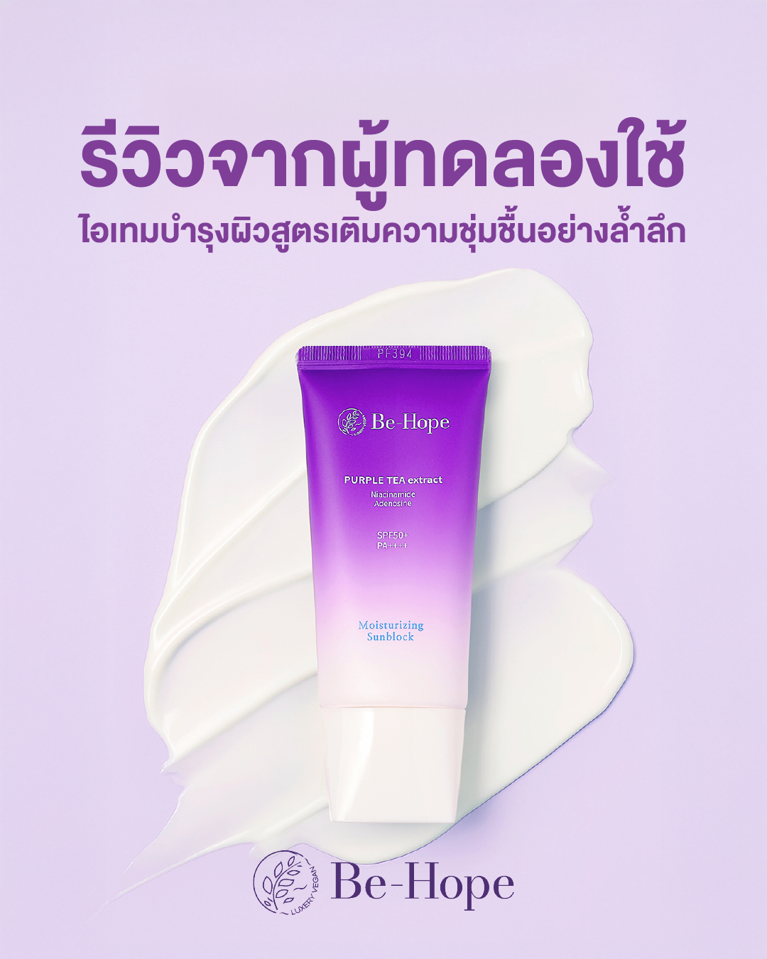 Be-Hope Vegan Moisturizing Sunblock SPF50+ PA++++ คือกันแดดเนื้อบางเบาแบบมอยส์เจอไรซิ่งที่ให้การปกป้องผิวจากรังสี UVA และ UVB สูงสุดพร้อมด้วยความชุ่มชื้น เหมาะกับทุกสภาพผิวแม้ผิวบอบบางแพ้ง่าย สูตรวีแกน 100% ปราศจากส่วนผสมจากสัตว์และเป็นมิตรต่อสิ่งแวดล้อม การปกป้องแบบ SPF50+ PA++++ จะช่วยลดริ้วรอยจากแสงแดด ฝ้า กระ และจุดด่างดำ พร้อมบำรุงให้ผิวเนียนใสสุขภาพดี ไม่เหนอะหนะ และไม่ทิ้งคราบขาว