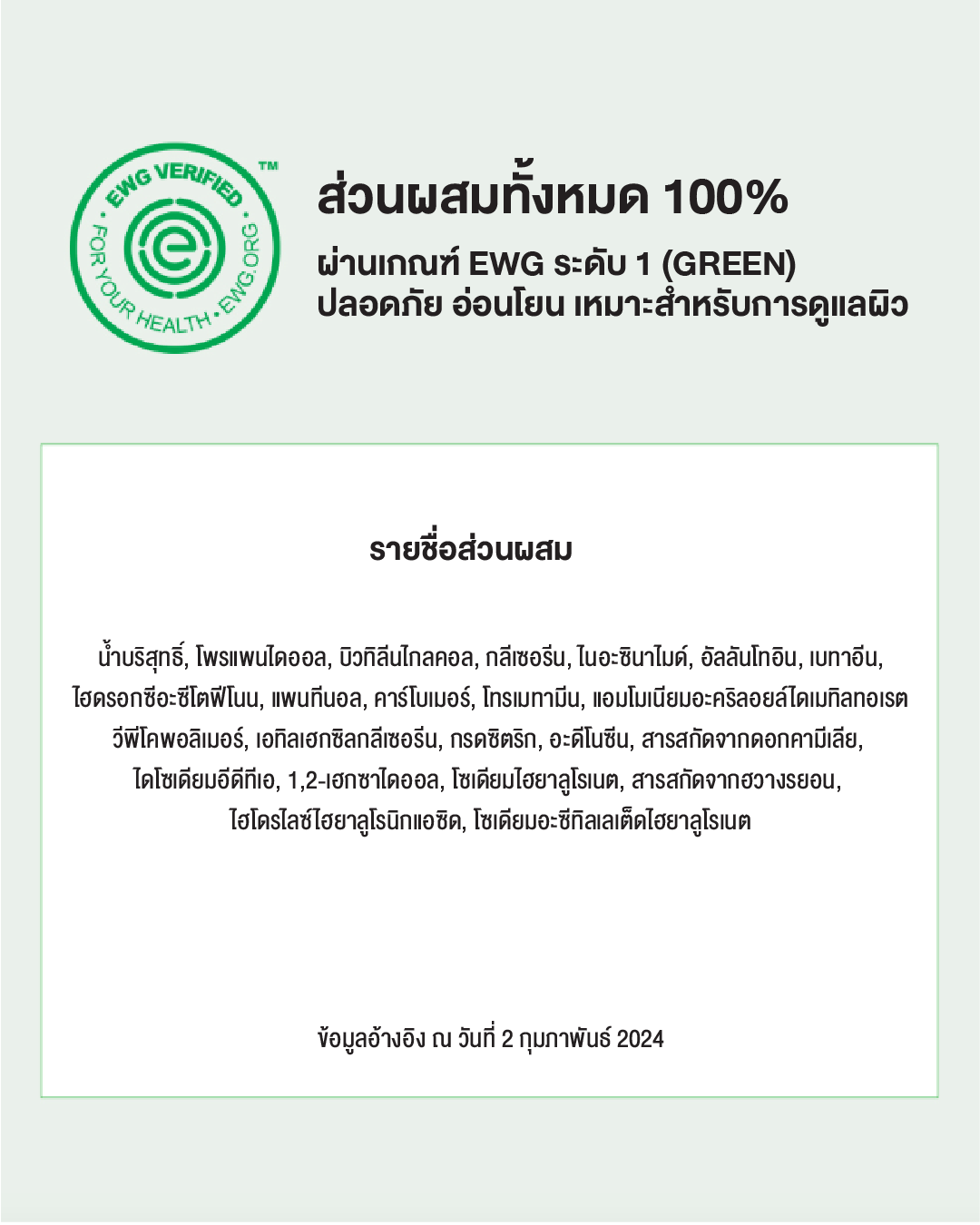 ส่วนผสม Vegan, Silicone-Free, EWG Green, Eco-Friendly Packaging